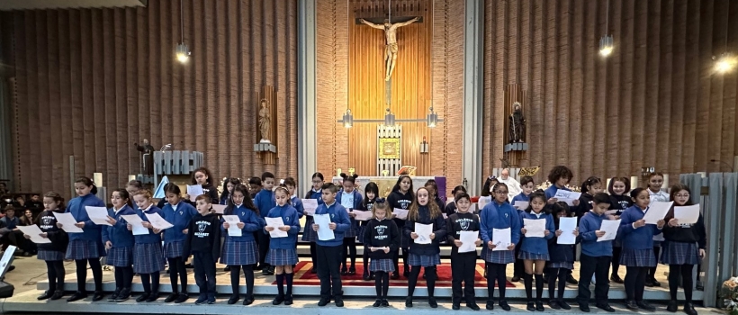Hoy hemos celebrado la fiesta de la Inmaculada Concepción de María con una Eucaristía en nuestra Parroquia de San Pablo. En ella, los alumnos de 3º de E. Primaria nos obsequiaron interpretando con increíble dulzura "Junto a ti, María", acompañados al piano por el profesor de Música, David.