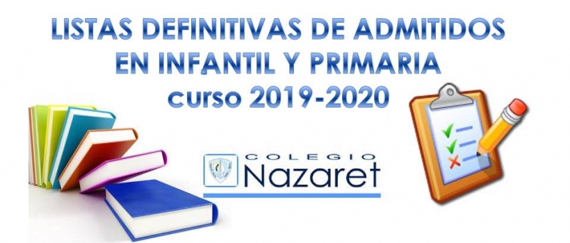 Ya se han publicado las listas definitivas de alumnos admitidos y no admitidos en Infantil y Primaria, para el próximo curso 2019/2020 (las de Secundaria se publicarán el 28 de junio).