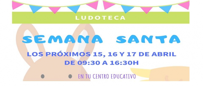 Los próximos 15, 16 y 17 de abril, durante las vacaciones escolares de Semana Santa, los niños de 3 a 12 años podrán disfrutar de una divertida ludoteca en el colegio Nazaret. De 09:30 a 16:30 h. (servicio de comedor incluido), se desarrollarán talleres, juegos cooperativos, "gymkhanas", etc. en nuestras propias instalaciones. El plazo de inscripción termina el día 10 de abril.
