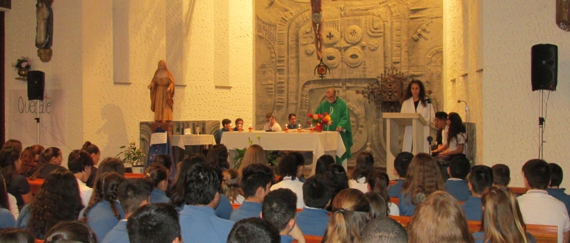 Con motivo del inicio del curso escolar 2018-2019, todos los alumnos desde 1º de E. Primaria hasta 4º de ESO, acompañados por sus profesores, celebramos una Eucaristía de bienvenida en la capilla del colegio.