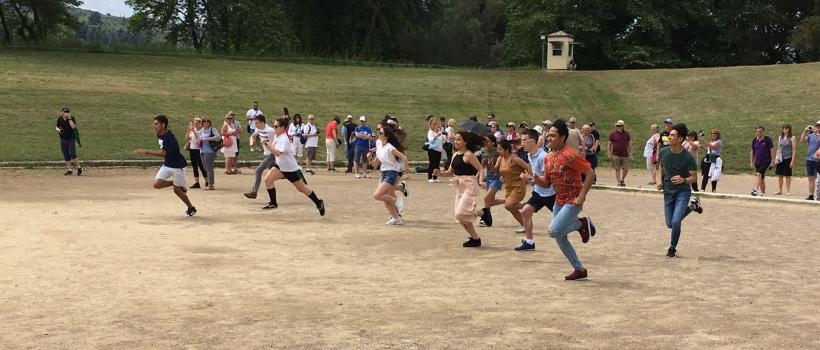 "Desde Zacharos nos dirigimos a la antigua ciudad de Olympia, famosa por ser centro religioso, uno de los santuarios más importantes de la Grecia antigua y por su gigantesca estatua de oro y marfil de Zeus esculpida por Fidias, la cual estaba considerada una de las Siete Maravillas del Mundo Antiguo.