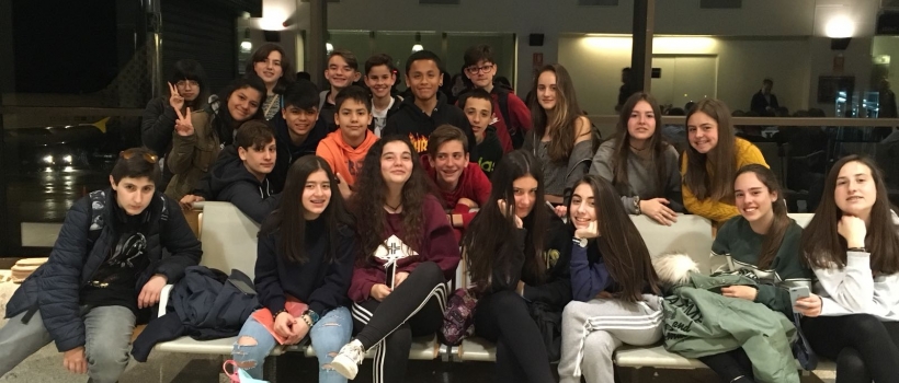 Los alumnos de 2º ESO que participan este curso en el Intercambio con Alemania partieron, con puntualidad germana, a las 5:00h. desde colegio hacia el aeropuerto de Asturias, acompañados de sus profesoras María y Encarna. Allí, tomaron el avión a las 7:30h. para llegar a Madrid a las 8:40h.