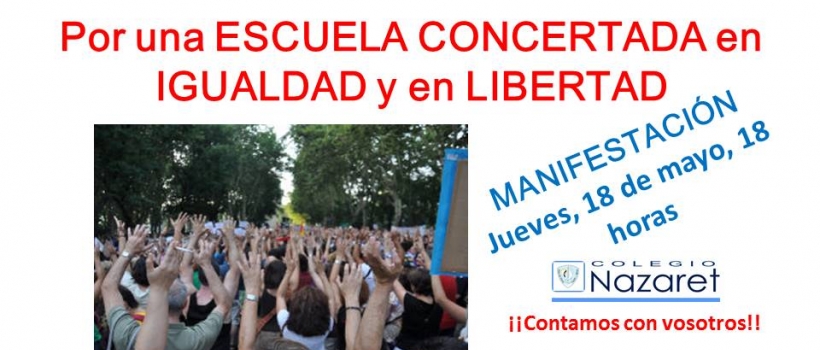 El próximo jueves, 18 de mayo, tendrá lugar una MANIFESTACIÓN por los derechos de la enseñanza concertada y la libertad de elección de centro para la educación en Asturias. Está convocada para salir de la Estación de Renfe de Oviedo a las 18 horas y discurrirá por la calle Uría hasta la Plaza de la Escandalera, donde se leerá un manifiesto.