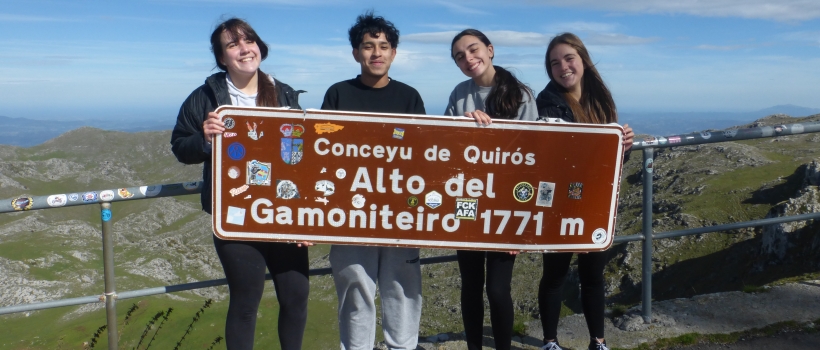 Los alumnos de 4º ESO, acompañados por los profesores Marcial Serrano y Marta Madera, recorrieron el viernes, 11 de octubre, en el concejo de Quirós, una ruta senderista. Comenzaron a caminar en el alto de La Cobertoria, recorriendo una senda dentro del Parque Natural de Las Ubiñas-La Mesa, hasta llegar a la cima más alta de la Sierra del Aramo (1771 metros), donde se sitúa una estación radioeléctrica.