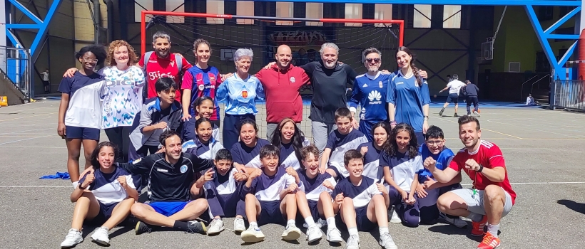 La semana pasada celebramos, un año más, el tradicional partido de profes contra alumnos de 6º de E. Primaria, un momento de encuentro donde todos disfrutamos y los más pequeños vieron a sus profes en un contexto diferente, vestidos de corto. El partido comenzó con una de las sorpresas y nuevo fichaje del equipo de profes, Manoli, quien además fue una de las goleadoras del encuentro. Tanto los alumnos de 6º A como los de 6º B lo pusieron muy complicado, incluso se adelantaron en el marcador varias veces. Pero finalmente, la experiencia de los mayores se hizo valer y el partido se decantó del lado del profesorado.