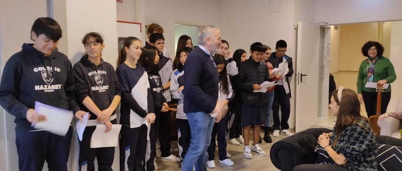 El grupo de 4º de ESO con la optativa de Música, acompañados de María, directora, y David, profesor de Música, fueron a felicitar la Navidad a la residencia Aramo Bombé el jueves, 21 de diciembre. Los alumnos compartieron villancicos populares con los mayores cantando junto a ellos acompañados por diferentes instrumentos; también bailaron dos coreografías navideñas con el mejor público posible: todos los abuelos presentes. Fue una experiencia inolvidable para todos que se repetirá, seguro, el próximo año.