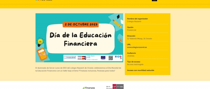 Hoy, los alumnos de 3º de ESO han celebrado el Día de la Educación Financiera con una charla dada por el programa "Finanzas para mortales", en el que colaboran el Banco Santander y el Banco de España. EDUCAMOS PARA LA VIDA.