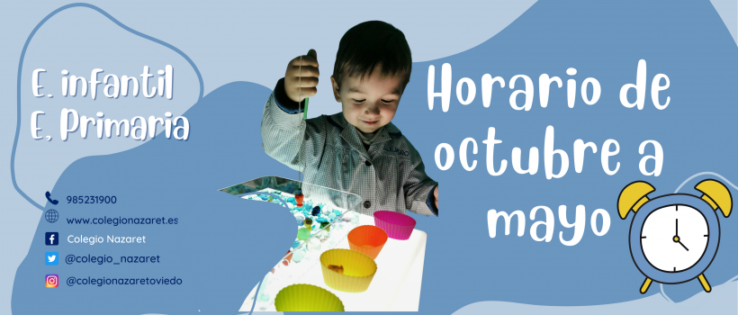 Os recordamos que, a partir del próximo lunes, 2 de octubre, E. Infantil y E. Primaria tendrán clase por la tarde en el siguiente horario: