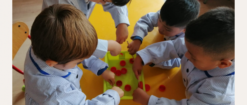 Los niños y niñas de 5 años estrenan el primer día de cole compartiendo juegos con sus compañeros, pescando entre todos taponcitos de colores. ¡Qué bueno volver a jugar y a aprender juntos!