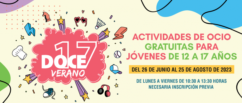 Actividades de ocio gratuitas durante el verano para jóvenes de 12 a 17 años, de lunes a viernes (de 10:30 a 13:30 horas). Es necesario inscribirse.