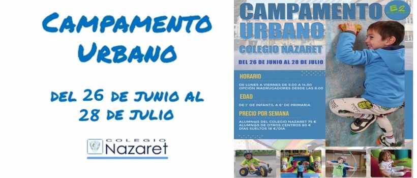 Entre los días 26 de junio y 28 de julio se desarrollará un Campamento Urbano en las instalaciones de nuestro colegio, a cargo de la empresa E2 EDUCACION Y EVENTOS. Se tratará de actividades lúdicas y deportivas para favorecer la adquisición de valores positivos, las habilidades personales y la socialización de los niños. Incluye: