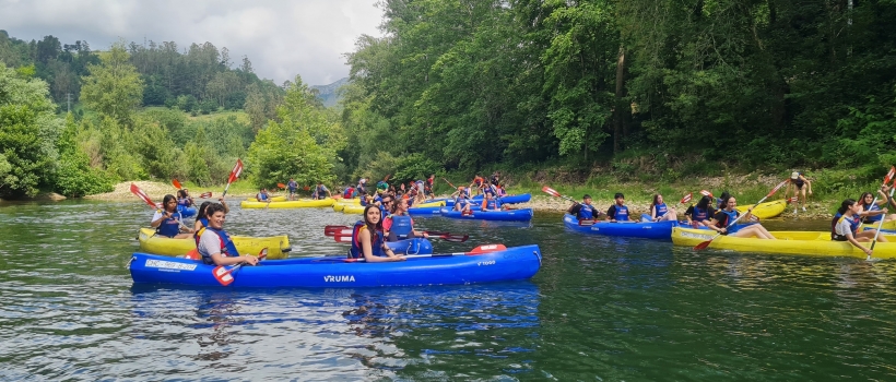 Los alumnos de 2º de ESO tuvieron su excursión de fin de curso y, como no podía ser menos, se pusieron el bañador y se atrevieron a remar. El Descenso del Sella comenzó en Arriondas y tras una salida en rampa, se adentraron en el maravilloso hábitat natural del río Sella. Tras siete kilómetros navegando, consiguieron llegar al final en la zona recreativa de Toraño. Hubo salpicaduras, chapuzones y muchos momentos graciosos que quedarán para el recuerdo.
