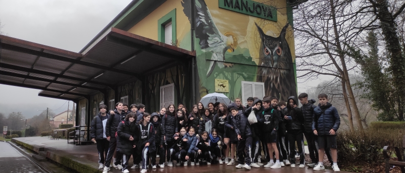 Los alumnos de 1º de ESO acudieron el pasado martes, 24 de enero, acompañados de Diego (profesor de E. Física) y de Aroa (tutora de 1º B), al Parque de Invierno para realizar la ruta por la senda verde hasta la localidad de Fuso. Alcanzando el kilómetro 2,2, hicieron una parada ante la antigua estación de la Manjoya, ambientada con murales de animales, donde se hicieron varias fotos de recuerdo. Rodeados de vegetación y acompañados del cantar de las aves, fueron atravesando túneles: "El Molineru", de 150 metros de longitud, "El Mergallu" de 70 metros, el de "Premañana" de 30 metros y, el último y más largo, el túnel "Veneros", de 260 metros de longitud.