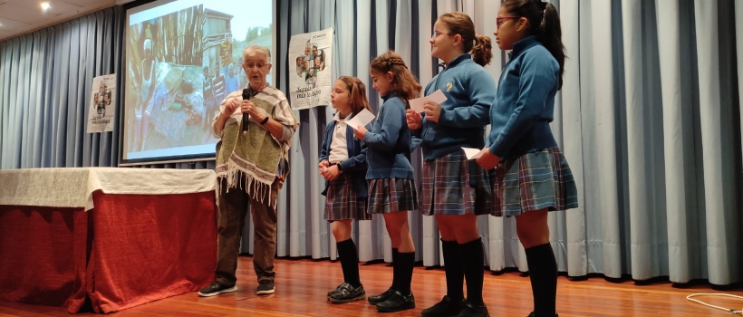 Pilar Bobes Monte, misionera de nuestra Congregación, Hijas de María Madre de la Iglesia, ha tenido ha tenido esta mañana un emotivo encuentro con los alumnos y profesores de Educación Primaria y Secundaria. En ambos nos dio testimonio de la gran labor que hace en Mozambique (África) y de la importancia de nuestras aportaciones económicas para levantar los proyectos que llevan a cabo en su misión.