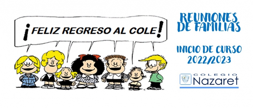 El martes, 6 de septiembre, tendrán lugar las reuniones de inicio de curso para E. Infantil y 1º de E. Primaria, de 17:00h. a 18:30h. La entrada se realizará por el portón de la calle Lola Mateos y, en el patio, el profesorado recibirá a las familias y las acompañará a las correspondientes aulas.