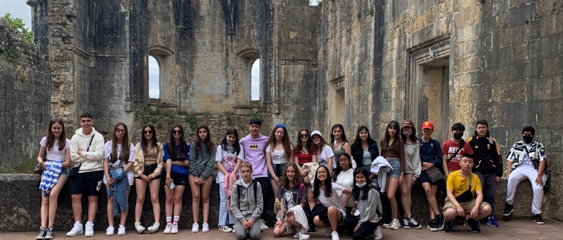 Los aguerridos viajeros de 4º de ESO comenzaron el viaje el domingo, 15 mayo. Tras encomendarse a la Santina, pusieron rumbo a Portugal, vía Castilla. Después de una breve parada, llegaron a la ciudad amurallada de Guarda y, tras la foto de rigor, comieron juntos. Los profesores comprobaron in situ la gastronomía portuguesa. Tras un paseo por el castillo y el casco antiguo, partieron hacia la ciudad medieval de Abrantes, a la que llegaron a media tarde.
