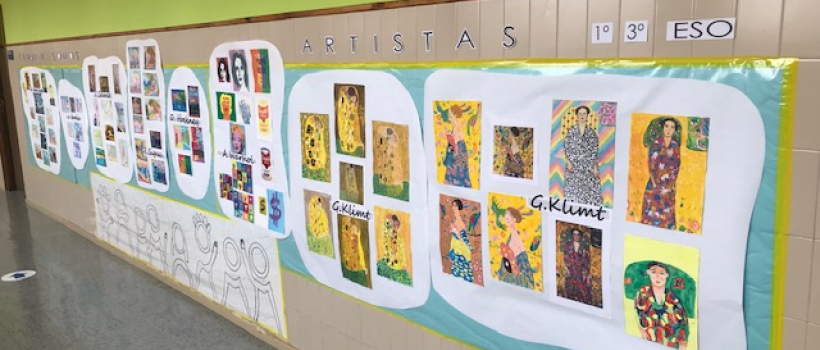 Nuestros alumnos de 1º y 3º de ESO exponen estos días un original mural “También somos artistas”, con algunos de los trabajos que han realizado experimentando con los elementos básicos de expresión plástica y ritmos compositivos. Para ello han interpretado varias obras de algunos de los pintores que hemos estudiado este trimestre: Seurat, Signac, Van Gogh, Sorolla, Warhol, Hockney y Klimt.