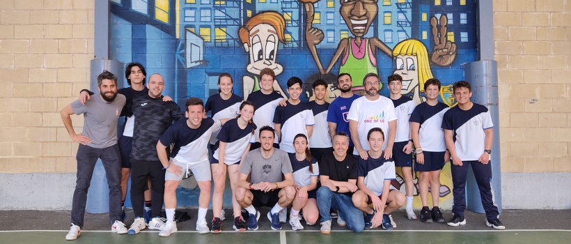 Ni siquiera en la NBA los partidos son tan emocionantes. Hoy se jugó en el patio un encuentro muy especial disputado entre profesores del colegio y un grupo de alumnos de lo más motivados. El público, entregado desde antes del partido, ovacionó por igual las canastas de unos y otros, aunque hubo pancartas en las que se podía notar cierta inclinación natural... En ambos equipos, el nivel estuvo muy por encima de las expectativas, y tensión, diversión y esfuerzo se manifestaron a la par. Lo mejor de todo es que, al final, ¡ambos equipos decían haber ganado! Es indudable que hay que repetir esta experiencia (y quizá ir anotando los tantos...).