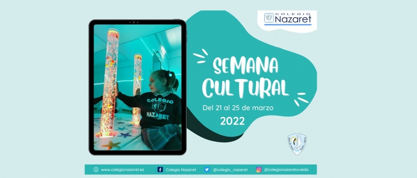 Del 21 al 25 de marzo tendrá lugar la SEMANA CULTURAL de este curso 2021-2022, con gran variedad de actividades culturales en distintos espacios dirigida a todos nuestros alumnos y familias. Tenemos preparados encuentros deportivos, cuentacuentos, dinámicas, rutas, espectáculos musicales, entrevistas, talleres, etc. para que sea una semana muy especial.